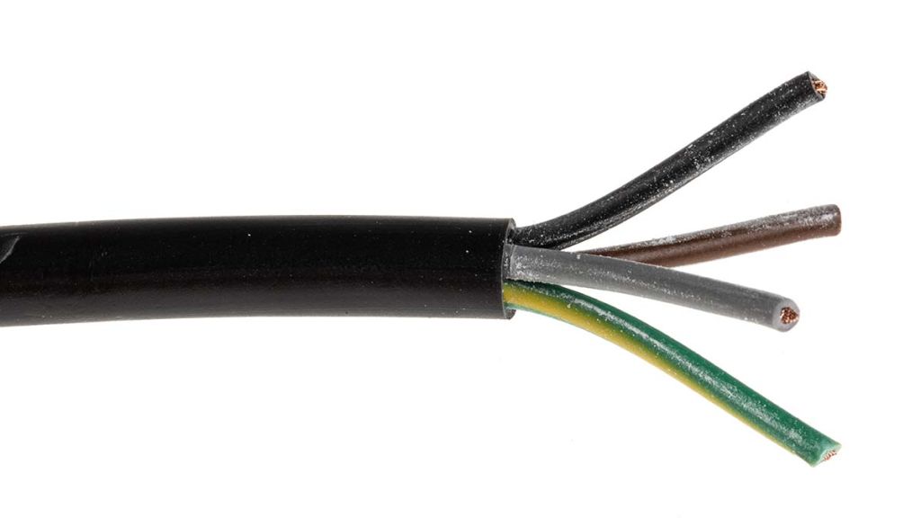 This flexible electrical power cable consists cores made up of fine stranded copper conductors or wires. Each individual core is surrounded by colour coded PVC (Polyvinyl Chloride) insulation for easy identification of the wires. All the cores are then surrounded by a final outer layer of PVC called a sheath or jacket.