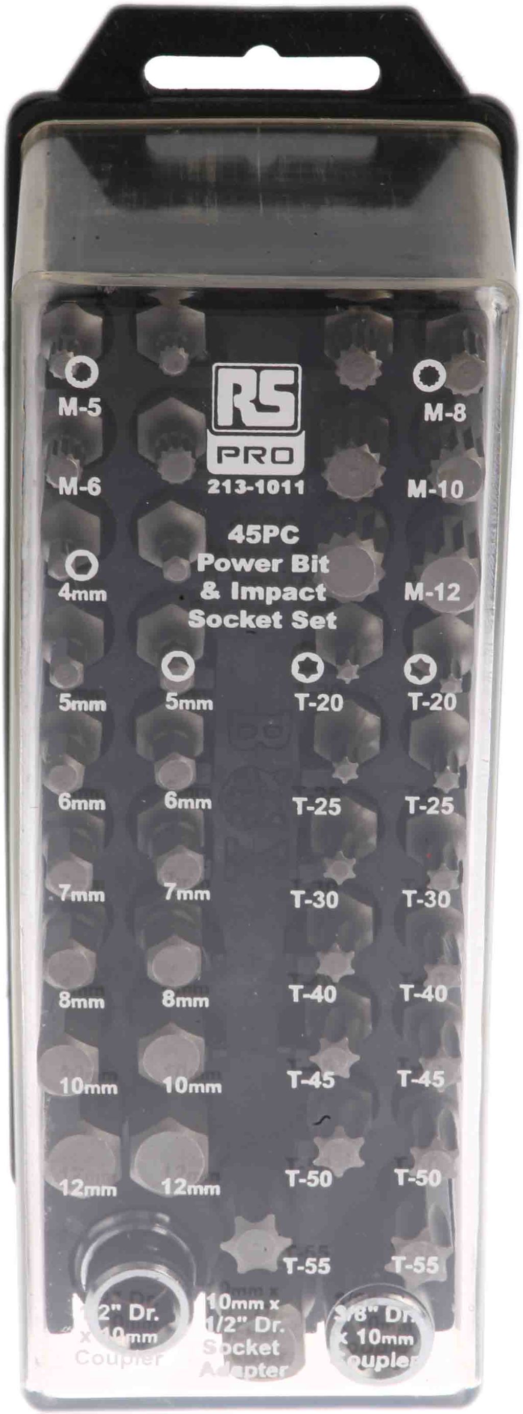 RS Pro 45 Piece Hex, Torx and Spline Bit Socket Set 1/2 and 3/8 inch in Square Drive