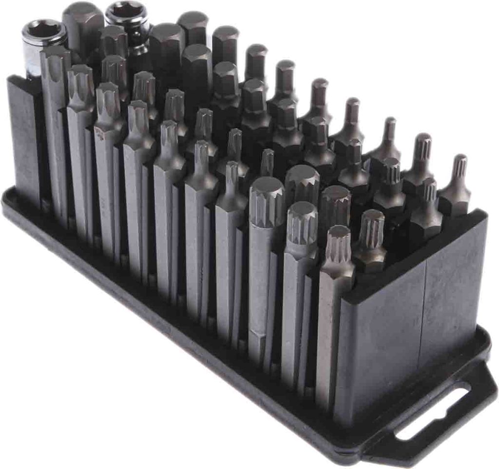 RS Pro offers this comprehensive set of hexagon, spline and Torx bits. This set consists of adaptors, bits, sockets and spline sockets with its own storage tray. The bit holders and sockets are manufactured from a chrome vanadium steel with a chrome finish. The set can be used for most tasks especially building or repairing various objects including automobile repairs and is a perfect kit for professionals or enthusiasts.