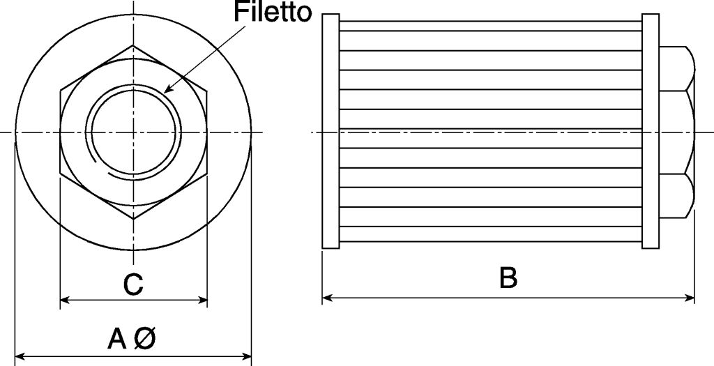 One piece suction strainer for use in hydraulic reservoirs and tanks. These elements can be installed directly onto the pump suction line and should always be below the minimum fluid level of the tank. The end caps, inner support cylinder and filter media are epoxy bonded to form a one piece contrsuction.