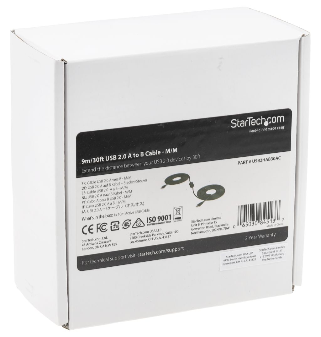 | Product description | StarTech.com Male USB A to Male USB B Cable, USB 2.0, 9m |