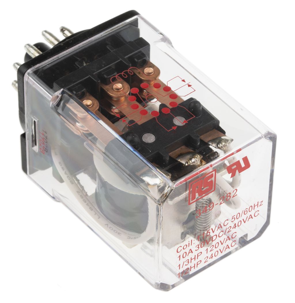 RS PRO, 115V ac Coil Non-Latching Relay 3PDT, 10A Switching Current Plug In, 3 Pole