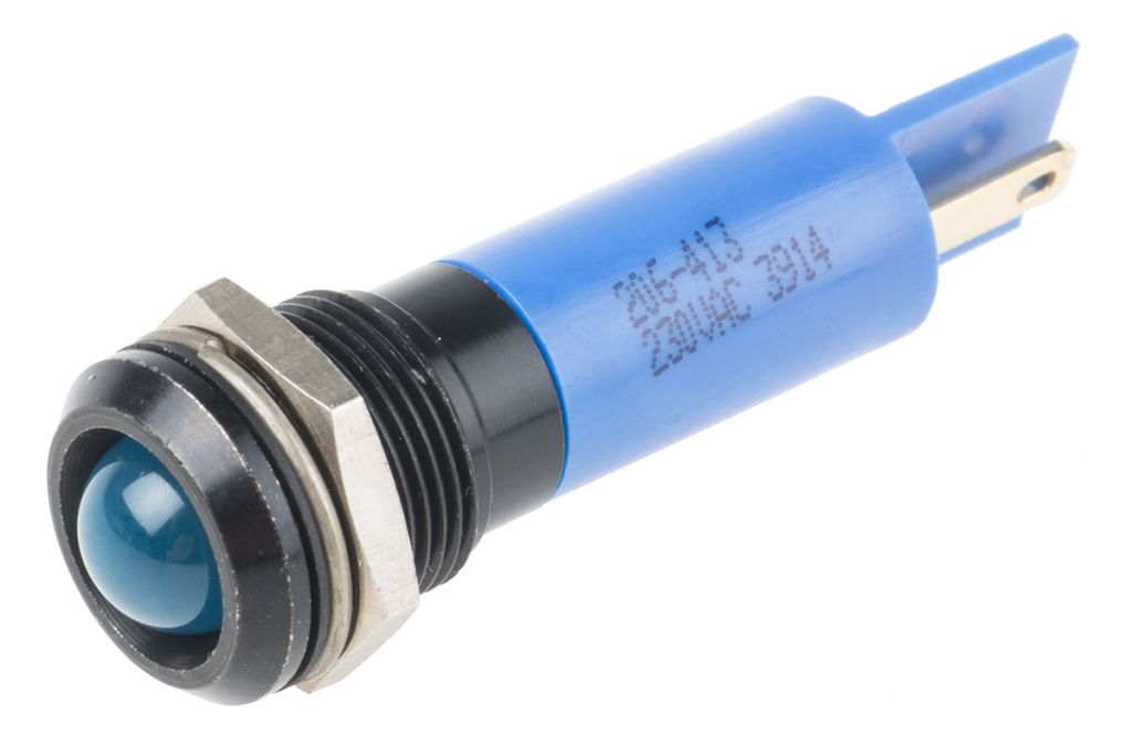 | Product description | RS PRO Blue Indicator, 230V ac, 12mm Mounting Hole Size, IP67 |