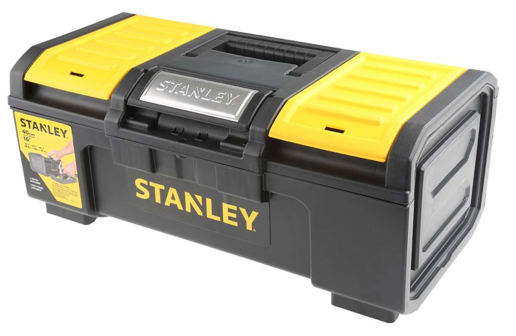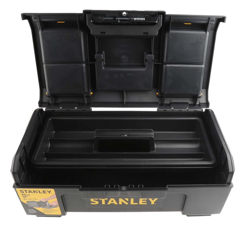 A choice of 16 inch (790-4782), 19 inch (790-4791) and 24 inch (790-4794) tool boxes from Stanley with one-hand operation. The latch allows for easy opening of the toolbox when the other hand is occupied. This basic plastic toolbox is suitable for home and general maintenance use.