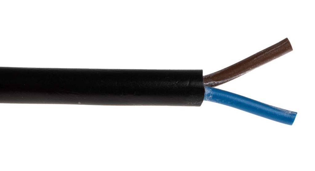 This flexible electrical power cable consists cores made up of fine stranded copper conductors or wires. Each individual core is surrounded by colour coded PVC (Polyvinyl Chloride) insulation for easy identification of the wires. All the cores are then surrounded by a final outer layer of PVC called a sheath or jacket.