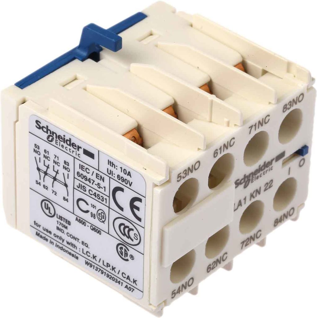 | Product description | Schneider Electric TeSys Auxiliary Contact - 2NC + 2NO, 4 Contact, Front Mount, 10 A |