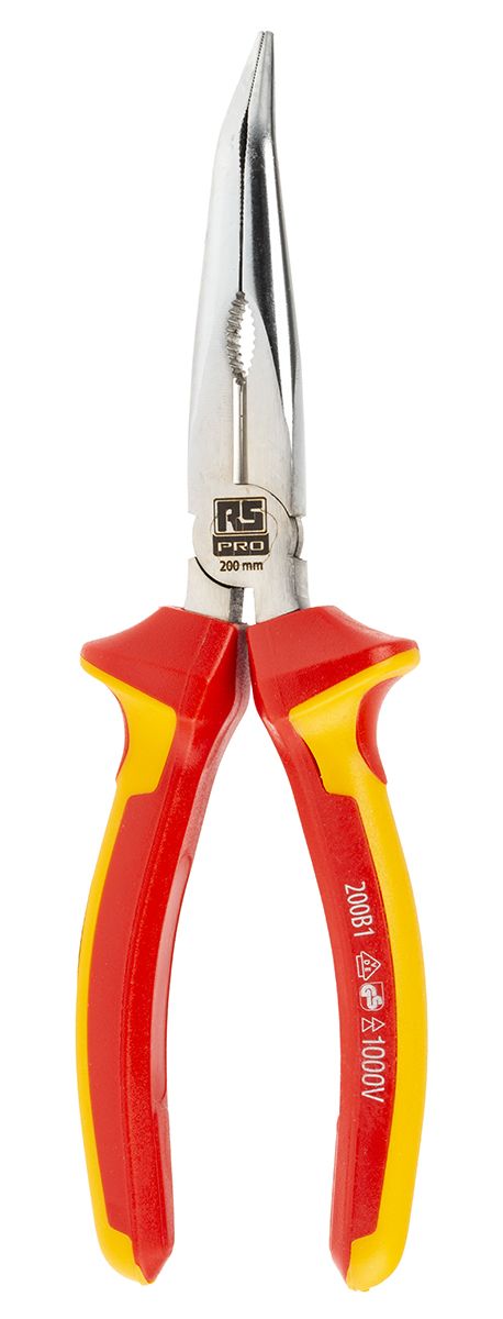 Product description RS PRO VDE Insulated Steel Pliers Long Nose Pliers, 200 mm Overall Length