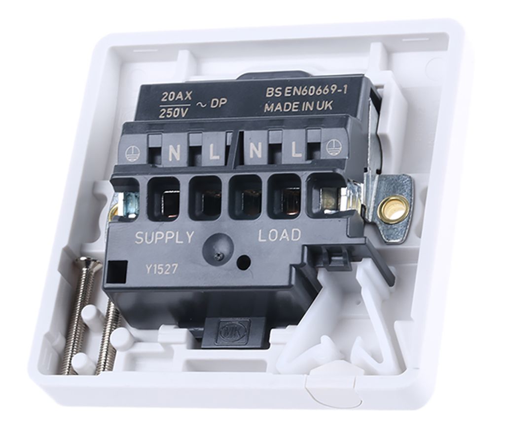 | Product description | White 20 A Flush Mount Rocker Light Switch MK White 7 mm Screwed Semi Gloss, 1 Gang BS Standard, 250 V ac 86mm |