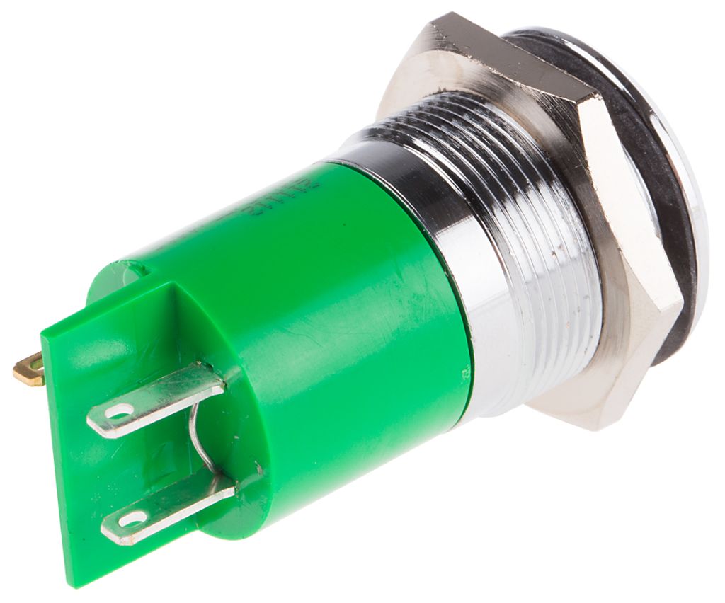 RS PRO Green Indicator, 22mm Mounting Hole Size, Solder Tab Termination