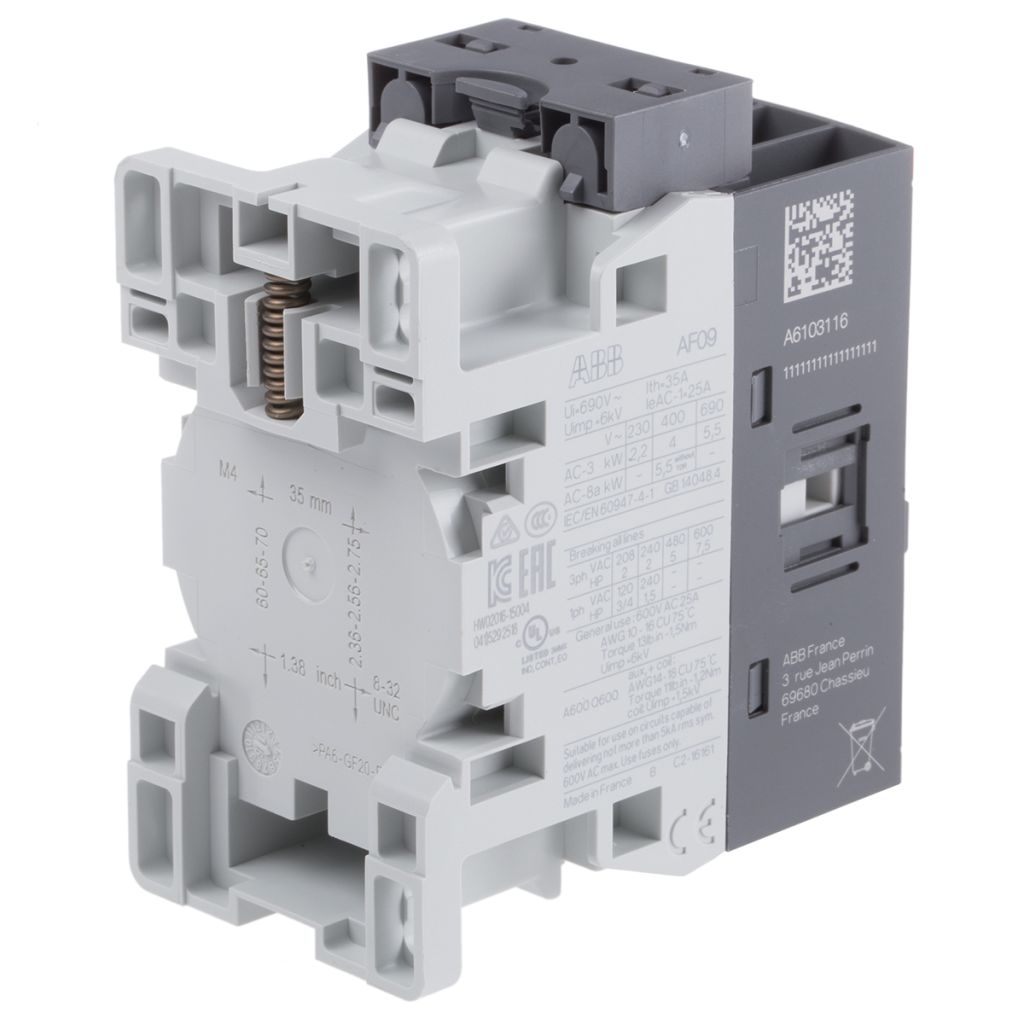 ABB AF Range AF09 3 Pole Contactor – 25 A, 24 V ac/dc Coil, 3NO, 4 kW