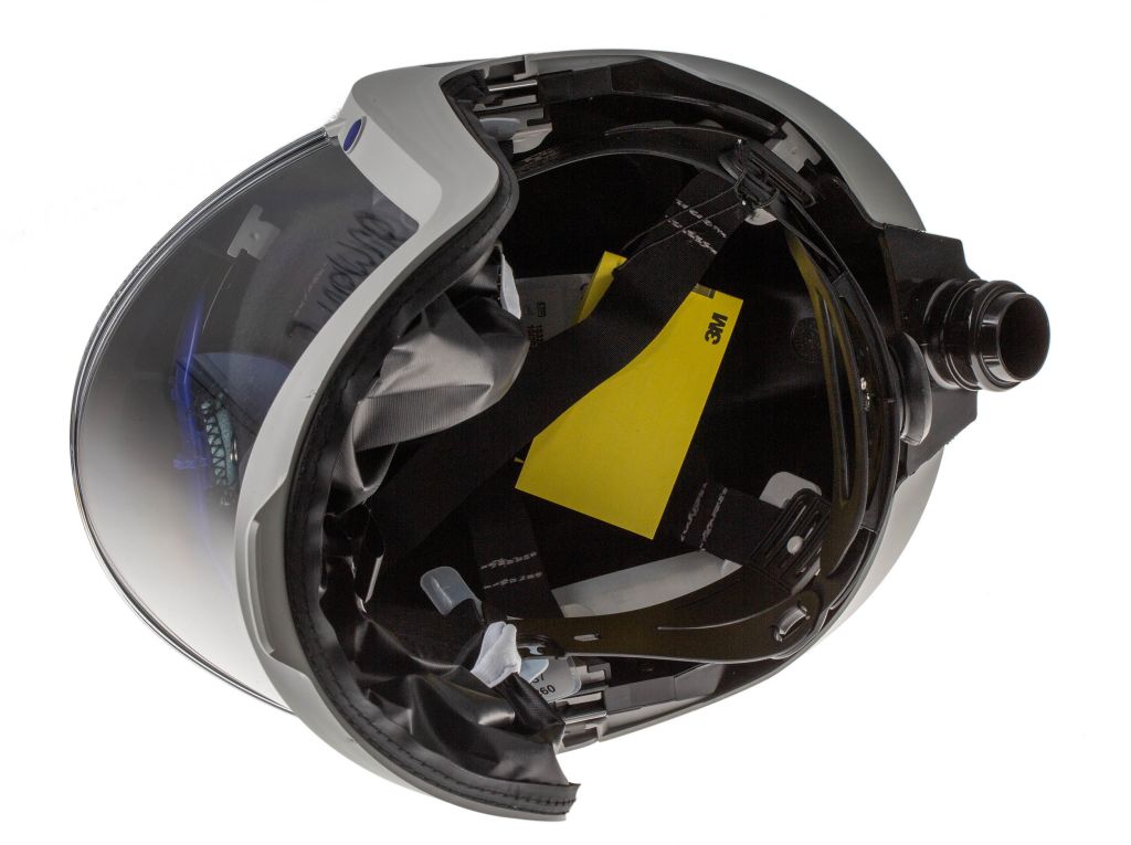 3M™ Versaflo™ M 307 Helmets provide respiratory, eye (EN166 Medium Impact), face protection and head protection (EN397), essential for areas where head protection is mandatory, for example construction sites. The helmet also features a flame resistant face seal for applications with sparks and hot particles. M 307 helmets meet the highest respirator performance requirements (TH3) for this type of product when used with specific 3M™ Air Delivery Units.