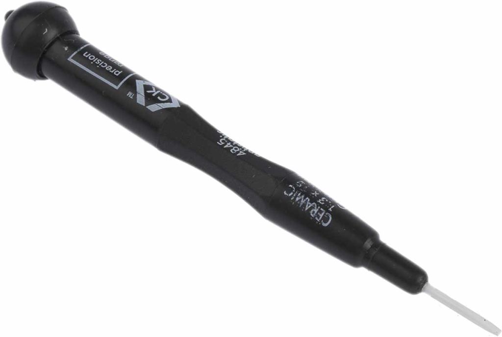 Set of 4 ceramic trimming tools/drivers with slotted and crosspoint profiles; and anti-static handles