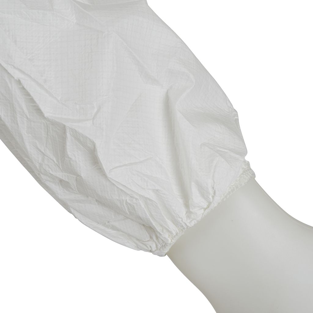 The coverall is made from a quality laminated microporous material, so therefore it offers a barrier to biological infective liquids. However the nonwoven side offers soft feel and is fully breathable. The lightweight and soft coverall features a two way zipper, with a storm flap cuffs and elasticated openings. Elasticated openings around the ankles, waist and wrists ensure these areas are not subjected to any contamination, but allow for a good fitment and freedom of movement.