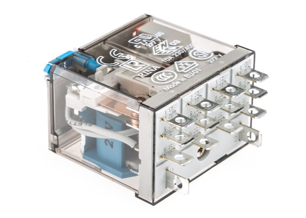 | Product description | Finder, 24V dc Coil Non-Latching Relay 4PDT, 12A Switching Current Plug In, 4 Pole, 56.34.9.024.0040 |
