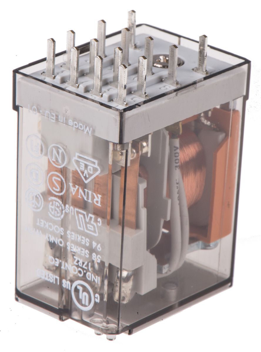 A range of printed circuit mount or plug in mount general purpose 2, 3 & 4 Pole relays from the Finder 55 series.