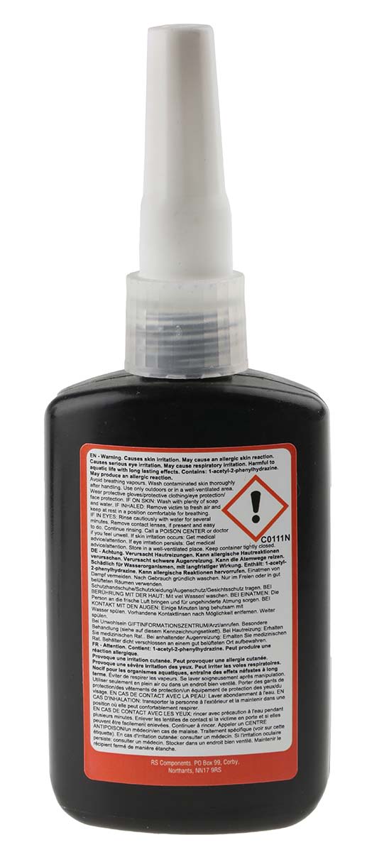 | Product description | RS PRO T70 Green Threadlocking Adhesive, 50 ml, 12 h Cure Time |