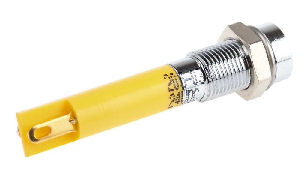 | Product description | RS PRO Yellow Indicator, 24V dc, 6mm Mounting Hole Size, Solder Tab Termination |