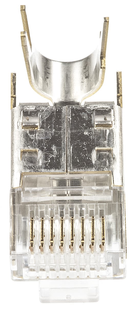 TM21P series Cat 5e modular RJ45 shielded plugs that conform to the requirements of the TIA/EIA-568B data wiring standard meeting the transmission performance of Enhance Cat5. These RJ45 plugs support Gigabit Ethernet (1000BASE-T) and Fast Ethernet (100BASE-TX) high-speed LAN transmission. A 360° metal shield provides EMI protection to the engagement area of these RJ45 connectors. When the plug is mated, the corresponding connector shield surfaces are connected to provide a continuous circuit. The connector is supplied with a single piece cover which snaps together and can be fitted after the plug has been assembled onto the cable. This cover also extends over release tab of the connector and protects it from breakage. TM21P series Cat 5e RJ45 plug connectors can be terminated to solid or stranded cable and feature a guide plate to assist with assembly. All models are highly reliable and excellent quality.