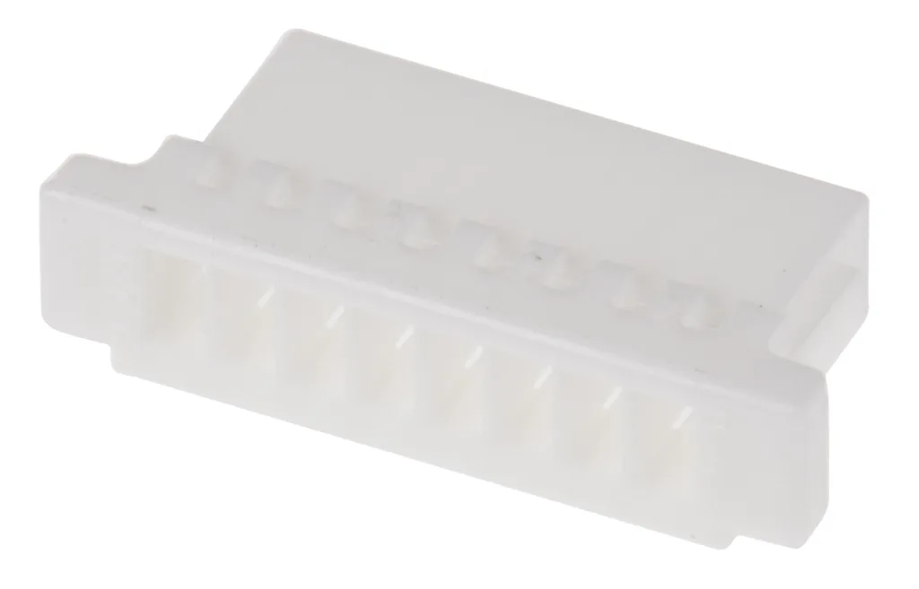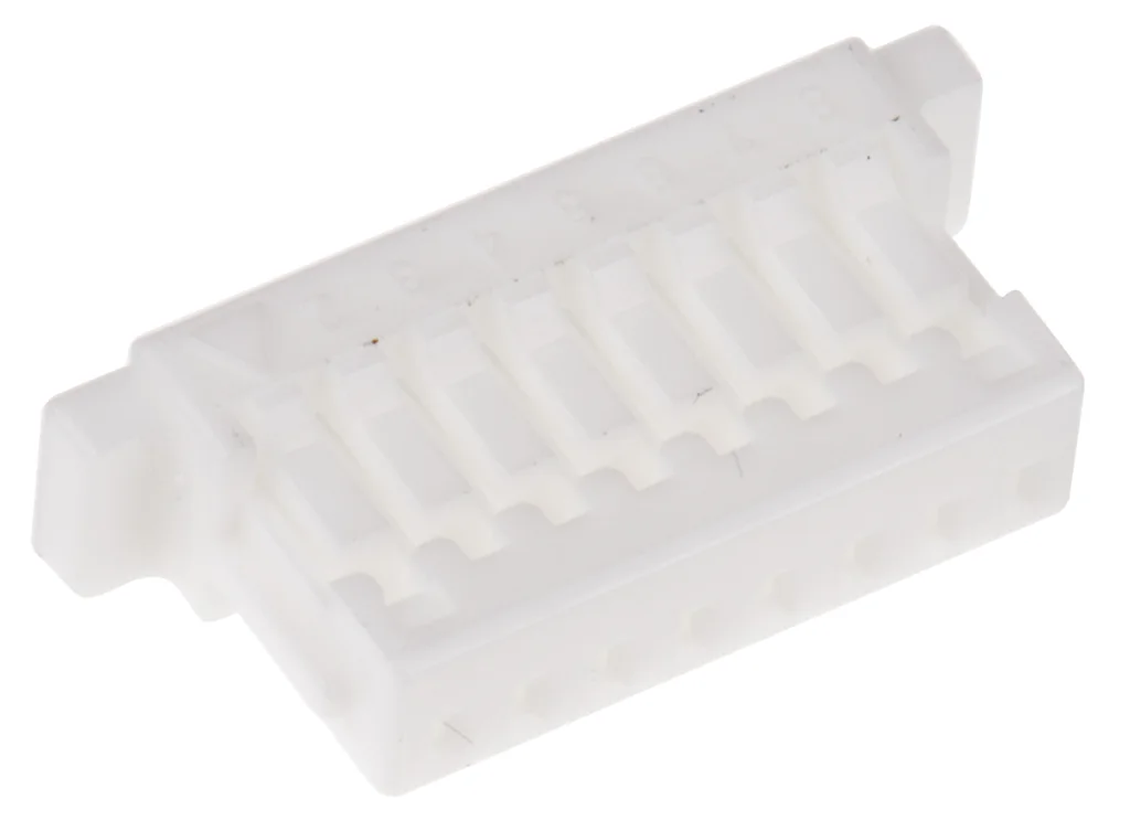 Crimp socket housing with protrusions on a 1mm pitch, which accept pre-terminated crimped leads typical stock number 311-6647.,Mate with Top or Side entry headers typical stock numbers 515-1529 and 515-1490 respectively.