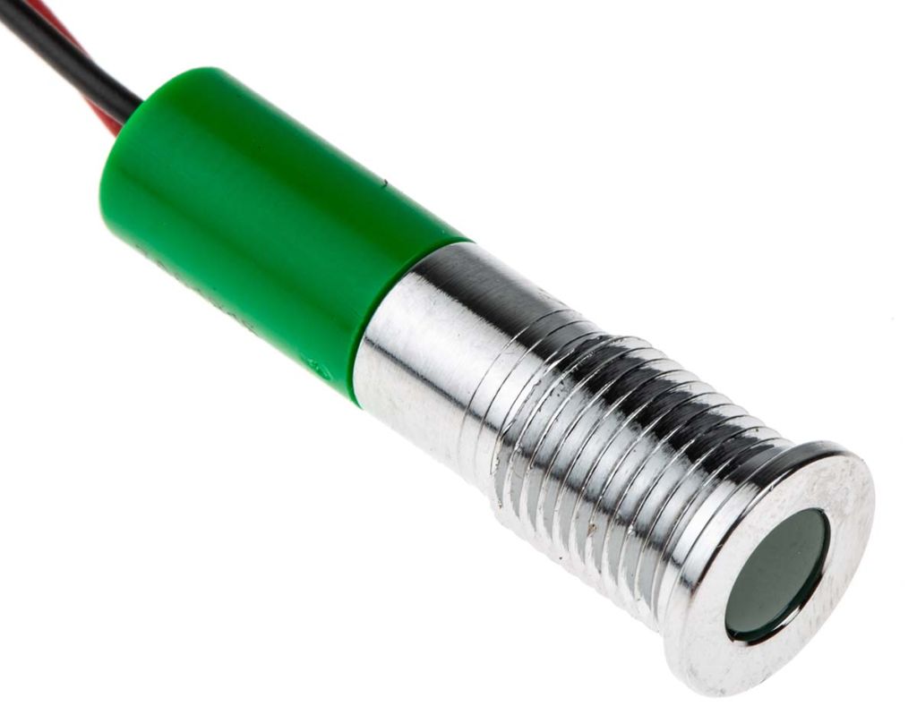 | Product description | RS PRO Green Indicator, 12V dc, 8mm Mounting Hole Size, Lead Wires Termination, IP67 |