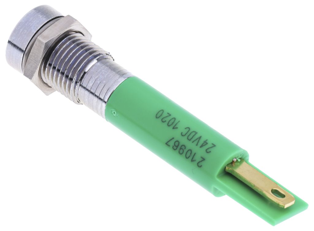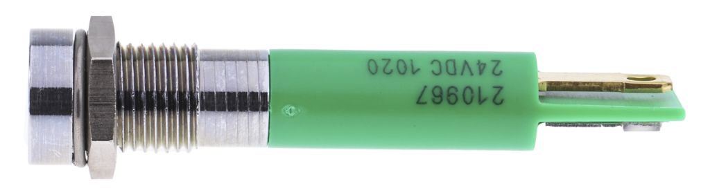 Product description RS PRO Green Indicator, 24V dc, 8mm Mounting Hole Size, Solder Tab Termination, IP40