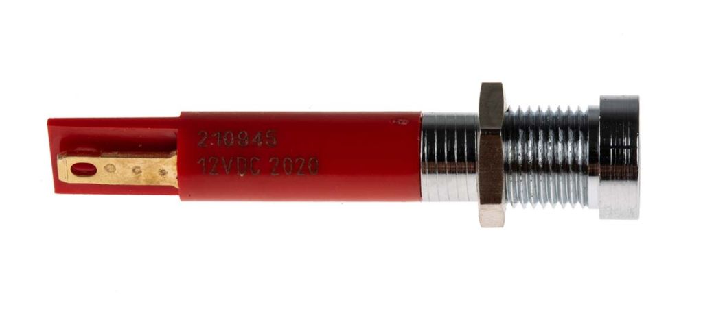 | Product description | RS PRO Red Indicator, 12V dc, 8mm Mounting Hole Size, Solder Tab Termination |