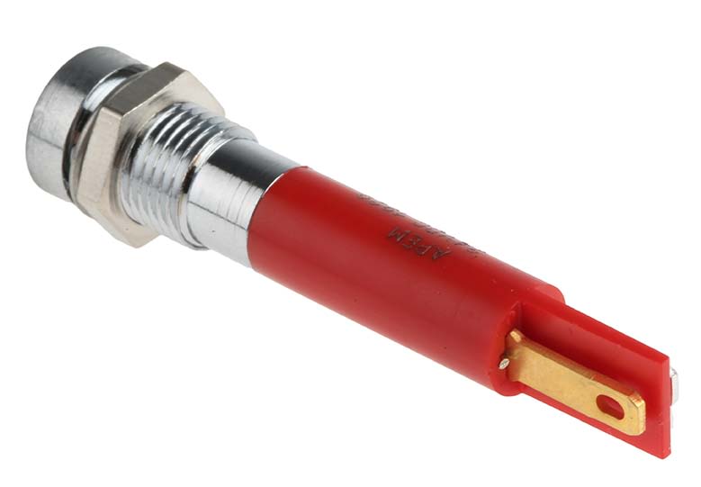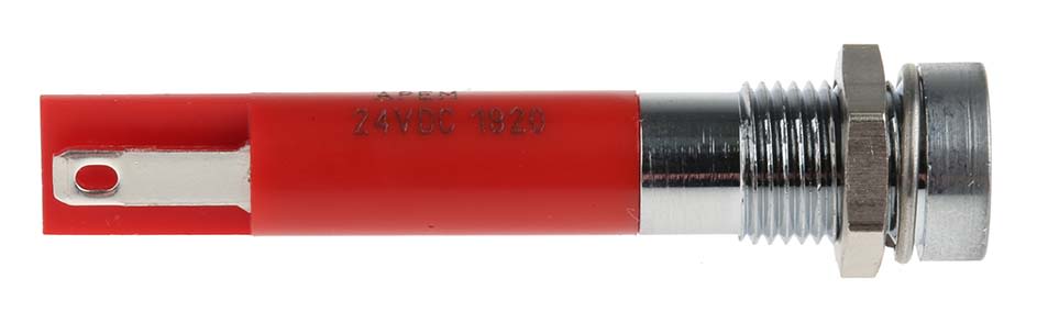 | Product description | RS PRO Red Indicator, 24V dc, 8mm Mounting Hole Size, Solder Tab Termination |