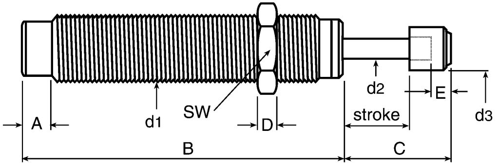 These shock absorbers have a steel body with Weartec - Plus (harsh environment) finish, hardened stainless steel piston rod, locknut and hardened steel rod end button with insert for noise suppression. Universal mounting and stop collar attachments are available separately.