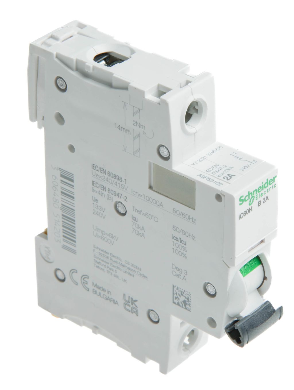 Product description Schneider Electric Acti 9 2A MCB Mini Circuit Breaker, 1P Curve B, Breaking Capacity 10 kA, DIN Rail, 100 → 133V