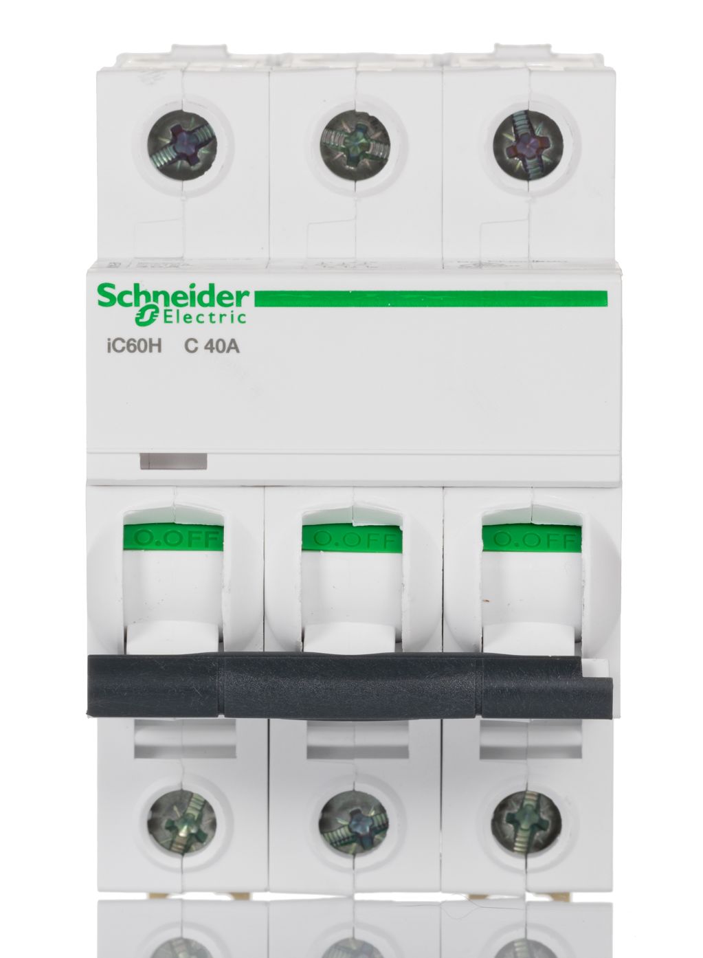 Product description Schneider Electric Acti 9 40A MCB Mini Circuit Breaker3P Curve C, Breaking Capacity 10 kA, DIN Rail, 440V