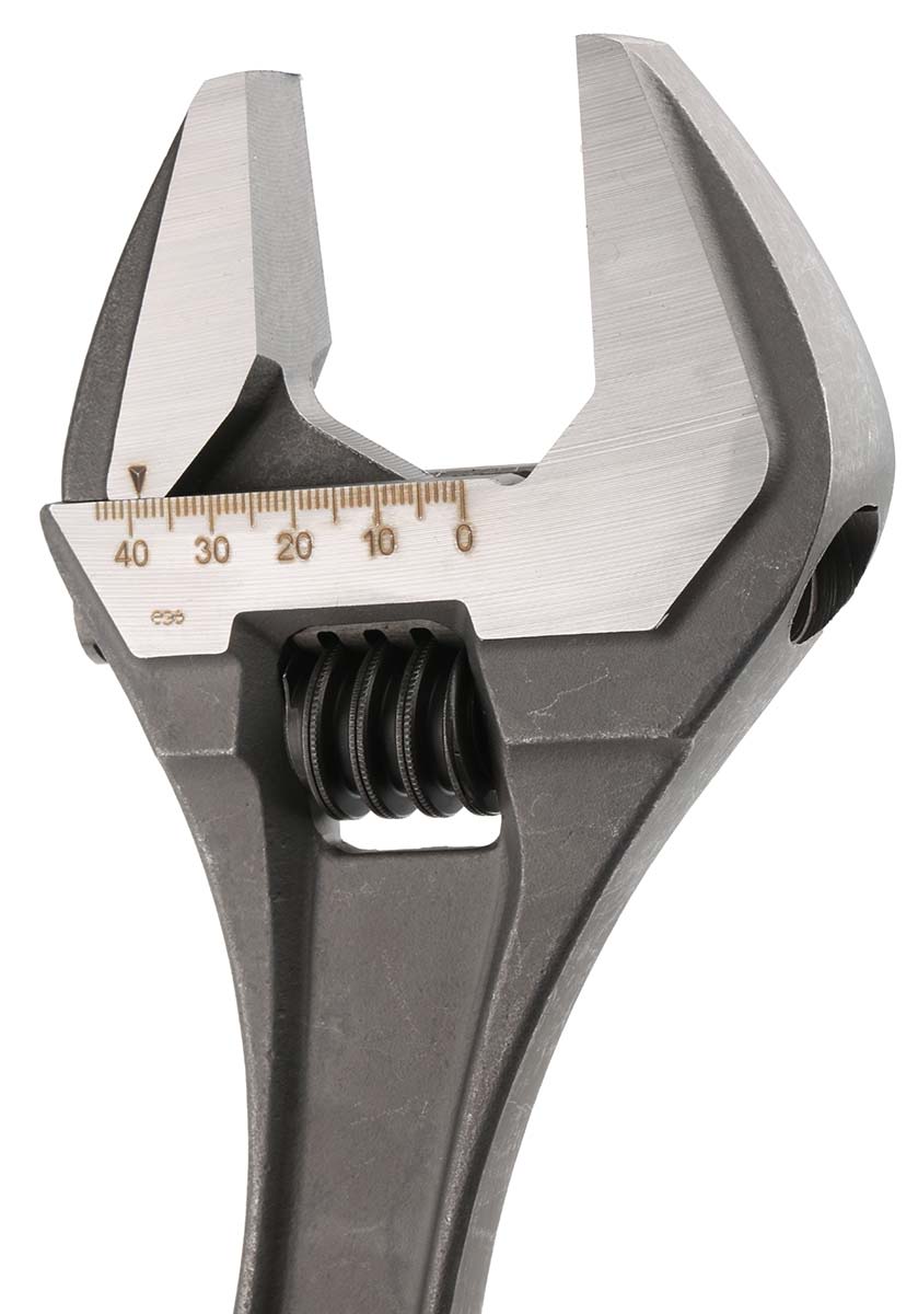Product description Bahco Adjustable Spanner, 380 mm Overall Length, 44mm Max Jaw Capacity