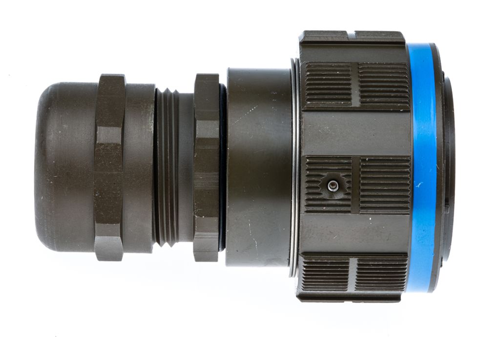 Stock number 447-9961 has a plastic gland with an aluminium shell with an olive drab cadmium plating.