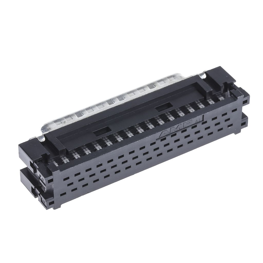 AMPLIMITE HDF-20 series low profile metal shell IDC d-sub connectors for flat ribbon cable. These AMPLIMITE HDF-20 series IDC d-sub ribbon cable connectors have pre-assembled black 94V-0 rated thermoplastic housings and covers with a tin plated steel front shell and are pre-loaded with duplex plated phosphor bronze contacts that accept 28 AWG and 26 AWG solid and stranded round conductor flat ribbon cable on 1.27mm centres.