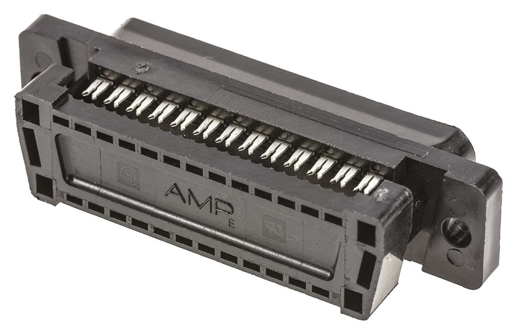 AMPLIMITE HDF-20 series low profile IDC All-Plastic d-sub connectors for round conductor flat ribbon cable. These AMPLIMITE HDF-20 series IDC All-Plastic d-sub ribbon cable connectors have pre-assembled black 94V-0 rated thermoplastic housings and covers, standard 3.05mm mounting holes and are pre-loaded with duplex plated phosphor bronze contacts that accept 28 AWG and 26 AWG solid and stranded round conductor flat ribbon cable on 1.27mm centres. These AMPLIMITE HDF-20 series d-sub ribbon cable connectors mate with HD-20 Board Mount and HDE All-Plastic d-sub cable connectors.
