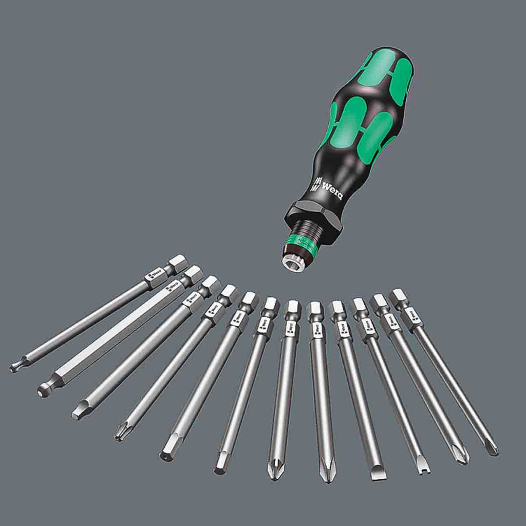 Wera Kraftform Kompakt 62 is typically used by professional tradesmen, engineers and DIY enthusiasts. They offer a unique alternative to transporting multiple screwdrivers around in tool boxes. They are ideal in mechanical, maintenance and construction applications.