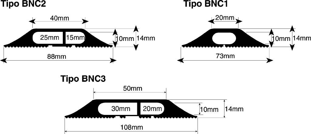 "The widths of profiles BNC1, BNC2 and BNC3 are: BNC1 (30.83mm), BNC2 (40.88mm) and BNC3 (50.108mm)."