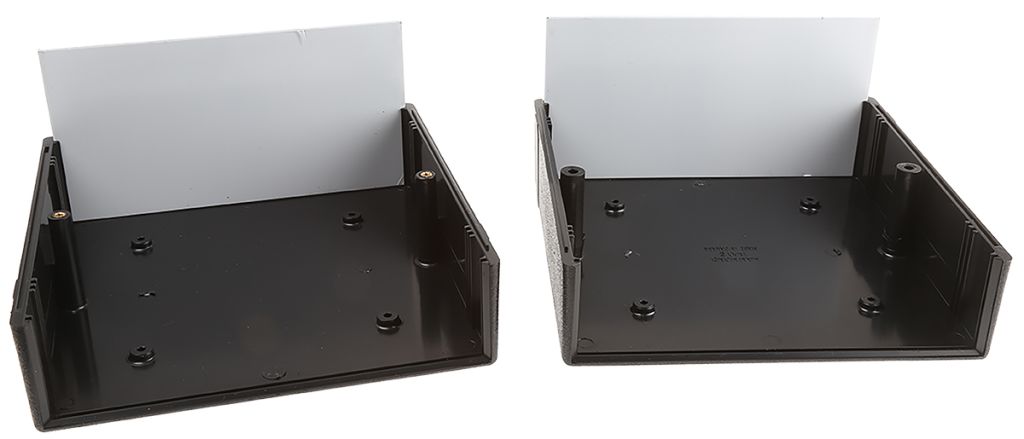 The Hammond 1598 series is a desktop electronic instrument case ideally suited for mounting printed circuit boards (PCBs). Moulded in flame retardant ABS plastic these enclosures are designed to meet IP54 protection against dust and splashing water. Two sets of vertical 1.5mm PC board guides are moulded into each half of the case, front and rear. The enclosure also has integral horizontal PC card mounts on Eurocard centres.