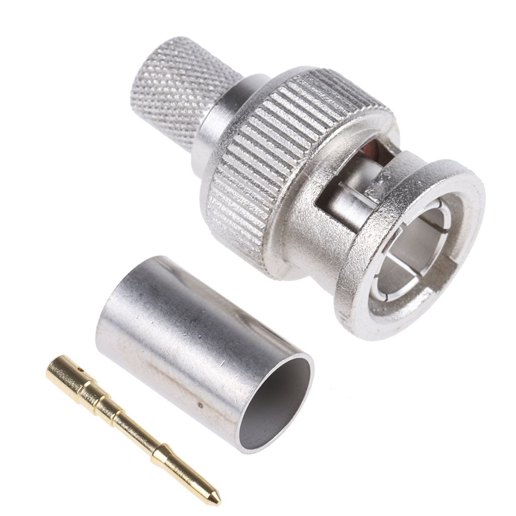 75 ohm BNC RF coaxial HDTV cable mount crimp plugs with a PTFE insulator, nickel plated body and a gold centre contact. These 75 ohm BNC RF coaxial HDTV crimp plugs are for use with the following RF coaxial cable types:
