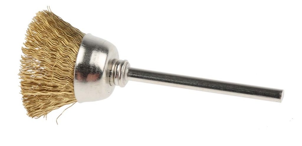 RS Pro brass cup brushes, these steel wheel brushes are perfect for de-rusting, paint removal and general cleaning tasks. Ideal for hobby, craft, electronics, restoration, small DIY and renovation.