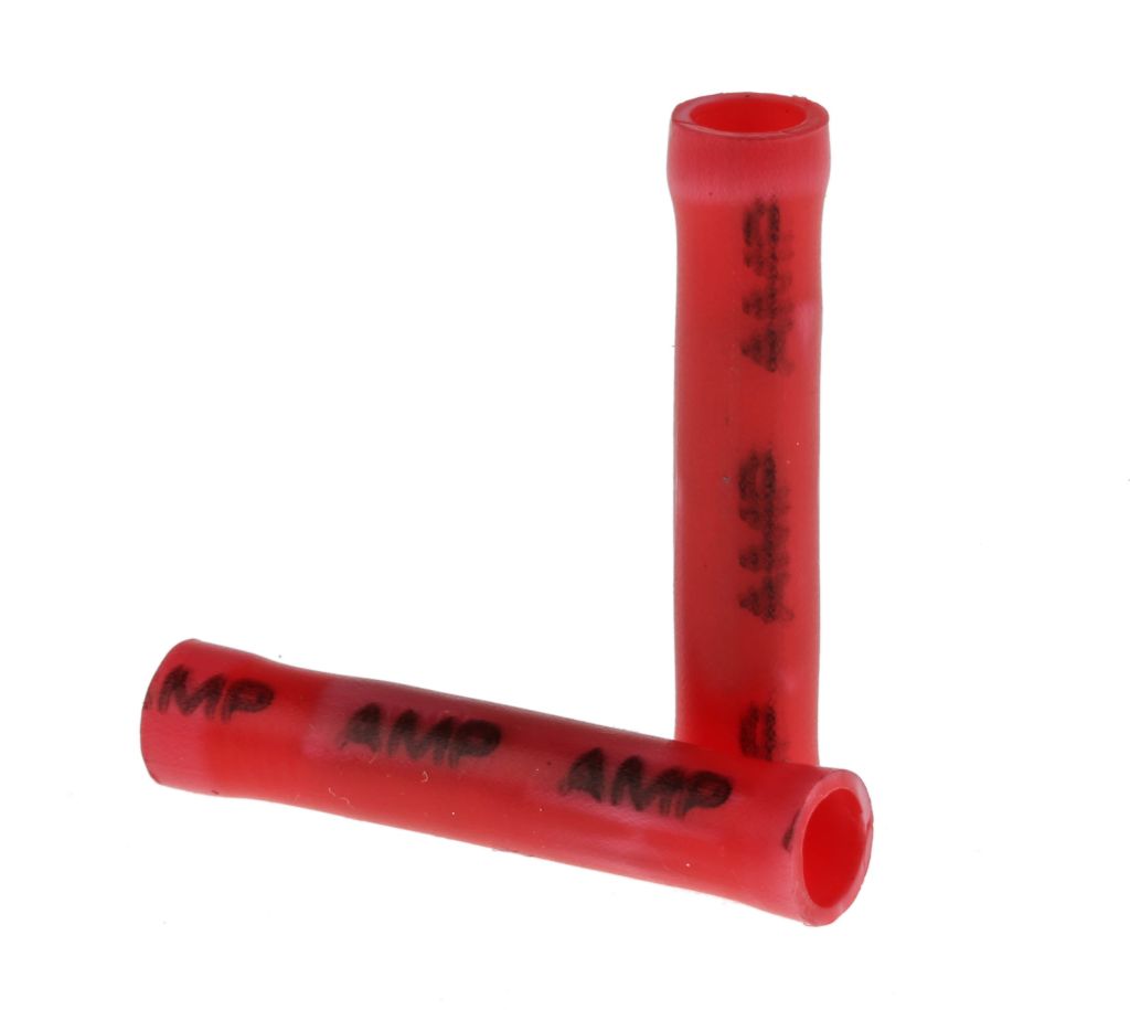 TE Connectivity, PLASTI-GRIP Butt Splice Connector, Red, Insulated, Tin 22 → 16 AWG