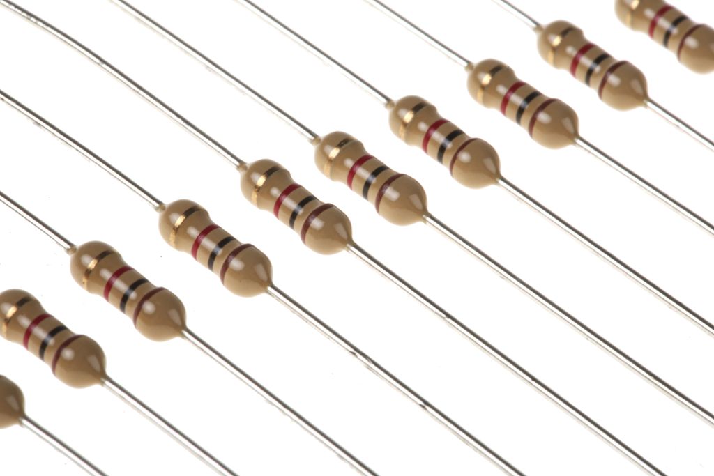 Each of the colour bands has a specific meaning. The first two colours give the base value of the resistor, the next gives the multiplier and the final band the tolerance. If a resistor has five bands, it is a more precise resistor, in which the first three bands represent the base values, and the fourth and fifth represent the multiplier and tolerance respectively.
