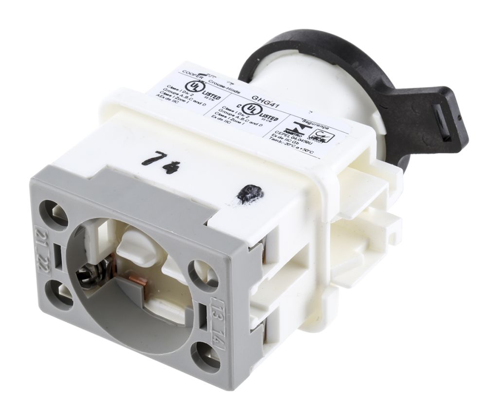 Panel mounting for use in Zone 1 hazardous areas. Maximum panel thickness is 5mm and the mounting hole required is 30.5mm diameter.,Front element is fixed to panel using the clamp nut. Body/contact block components fitted from rear utilising the built in quick action bayonet feature. The switches are rated at 500V/16A and the signal lamps have a rated voltage of 24Vdc.Housings are made from EN polyamide and glass reinforced polyester. Operating temperature: -55 to +50°C.