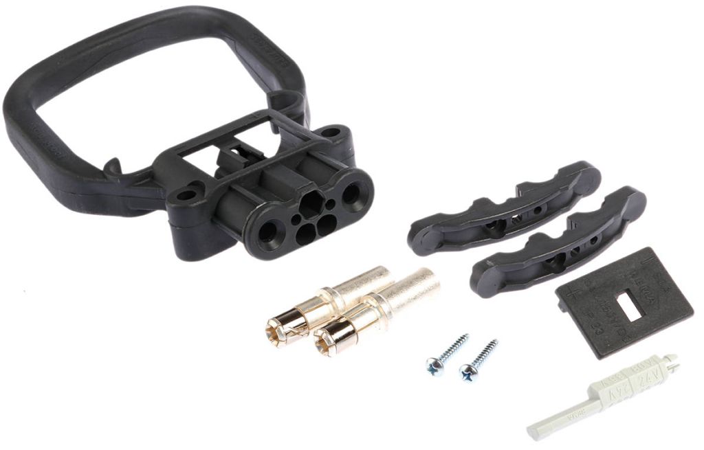 A connector system designed specifically for electrically operated industrial vehicle battery and charging operations. The connectors come complete with solder contacts, cable clamp, mounting screws and polarising key. The polarising key can be used in 6 different orientations depending on your voltage requirement. The voltage is then displayed through the connector housing, (24 V, 36 V, 48 V, 72 V, 80 V, 96 V). All models are highly reliable and excellent quality.