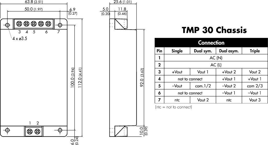 De-rate by 3.5% per °C above 50°C. for 'TMP 10' models
