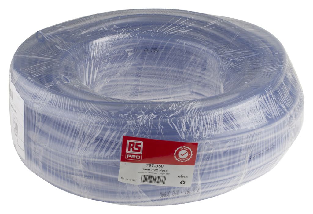 RS PRO PVC Flexible Tubing, Transparent, 14mm External Diameter, 25m Long, 126mm Bend Radius, Applications Various