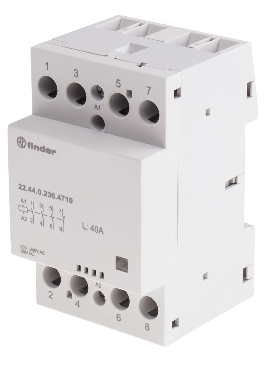 Finder 22 series 4-pole modular contactors, rail mounted, with 4 pole
