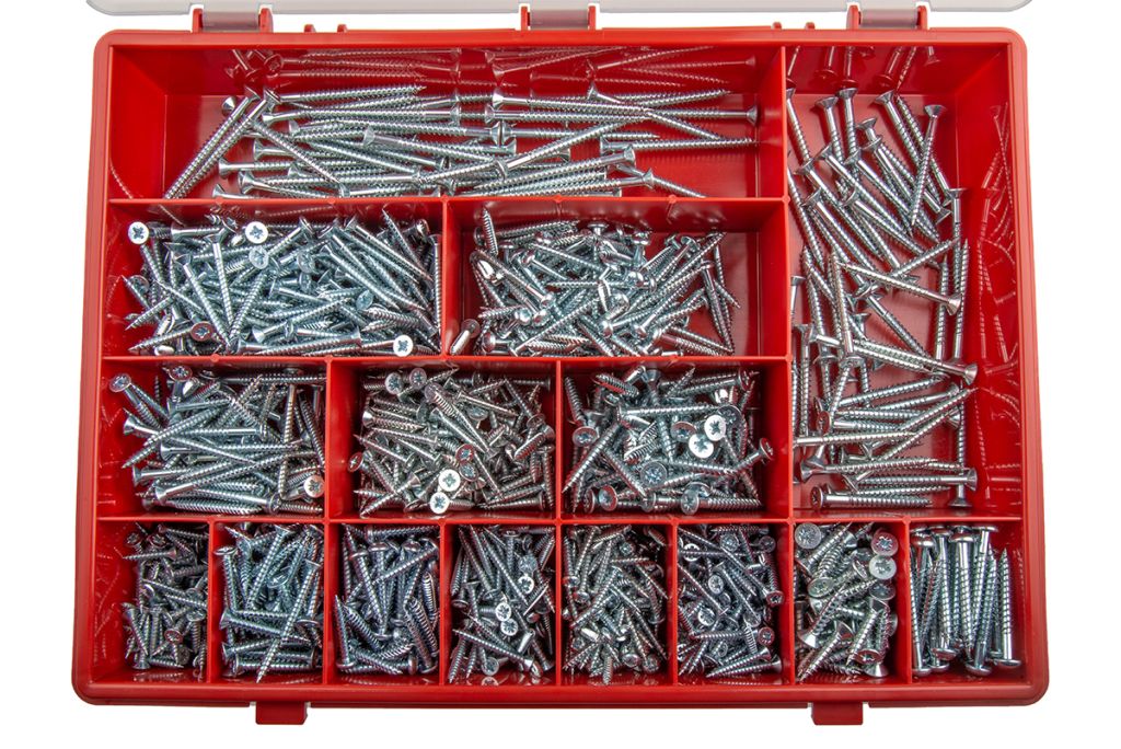 Kits of countersunk and roundhead screws in various lengths