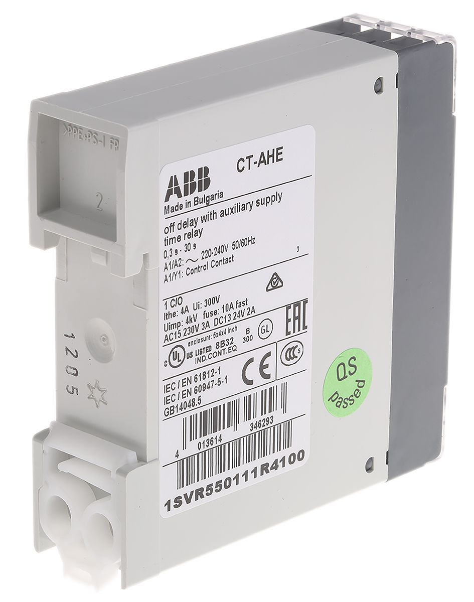| Product description | ABB SPDT Timer Relay, OFF Delay, 220 → 240V ac 0.3 → 30s, DIN Rail Mount |