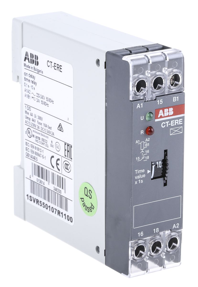 ABB SPDT Timer Relay, ON Delay, 200 → 240 V ac, 24V ac/dc 0.1 → 10s, DIN Rail Mount