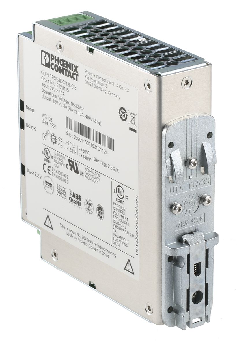 | Product description | Phoenix Contact QUINT-PS/24DC/24DC/8 96W Isolated DC-DC Converter DIN Rail Mount, Voltage in 18 → 32 V dc, |